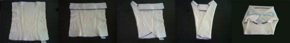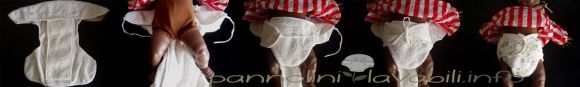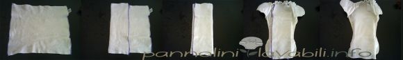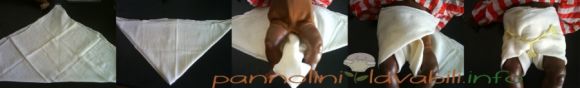 Si ripiega il ciripà all’altezza dei laccetti e si ripiega la parte posteriore più ampia in modo da ridimensionare il pannolino.