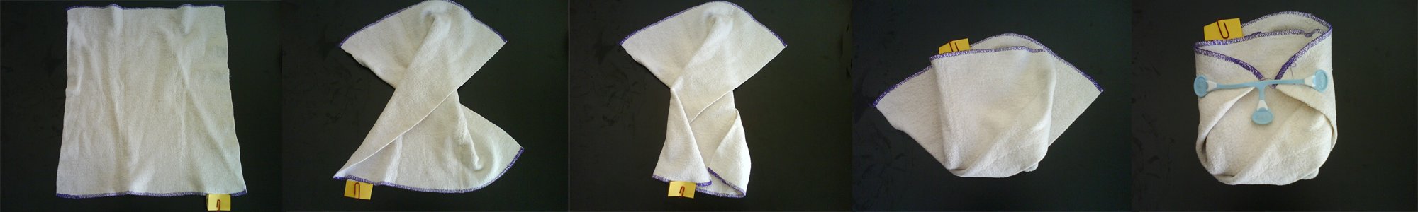 Si piega il prefold in base alle necessità e alla dimensione del bambino (vedi sotto altri tipi di piegatura).