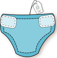 Si posiziona il pannolino sotto il sederino del bimbo e si chiude con il velcro (o con i bottoncini a seconda dei modelli).