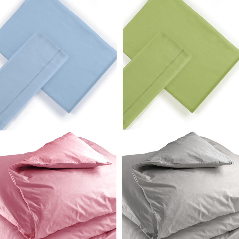 Set lenzuola letto singolo, che comprende1 federa 50x80cm modello a sacco con rimbocco, lenzuolo sotto con angoli e lenzuolo sopra dritto.