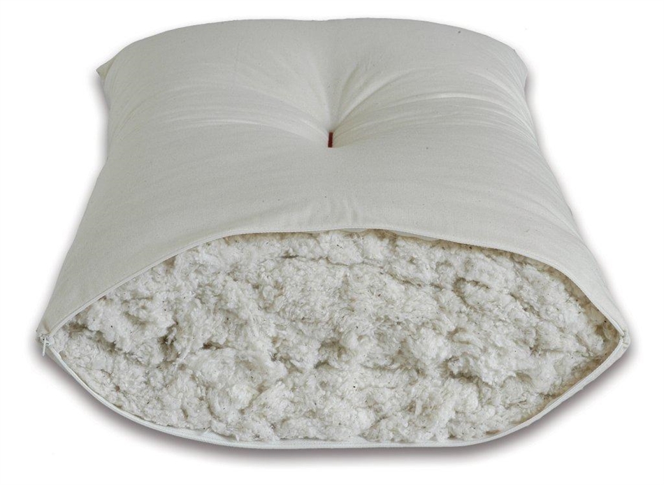 L'imbottitura 100% pula di miglio biologica - Fodera 100% cotone grezzo non sbiancato - Federa esterna 100% puro cotone naturale non sbiancato.